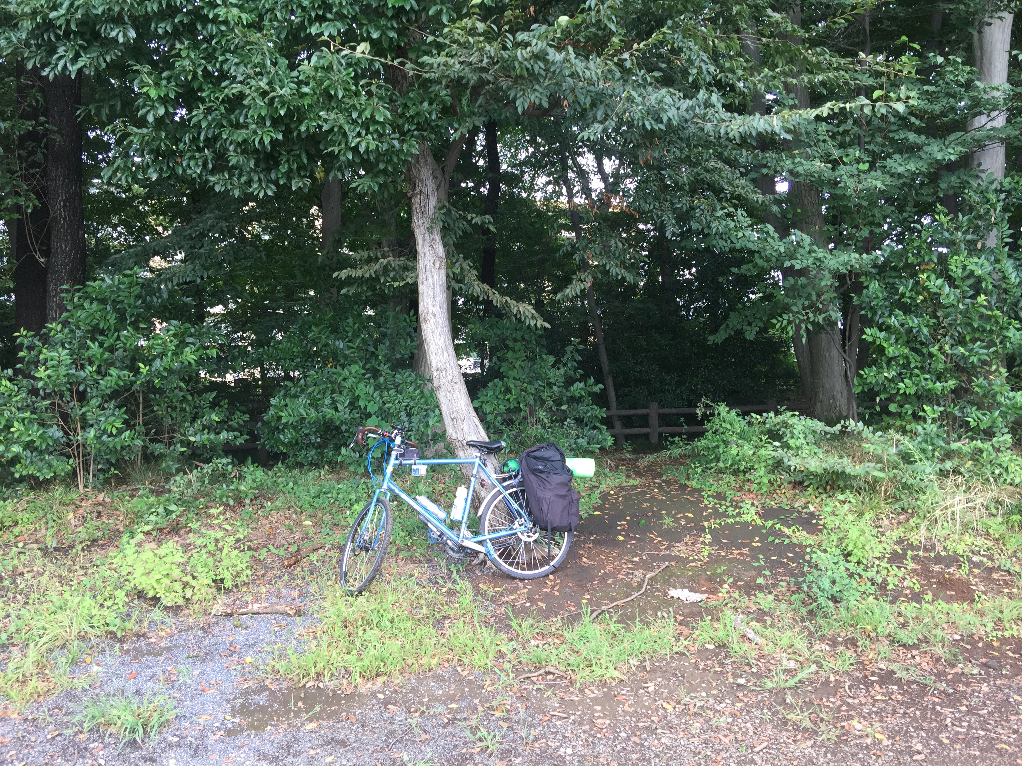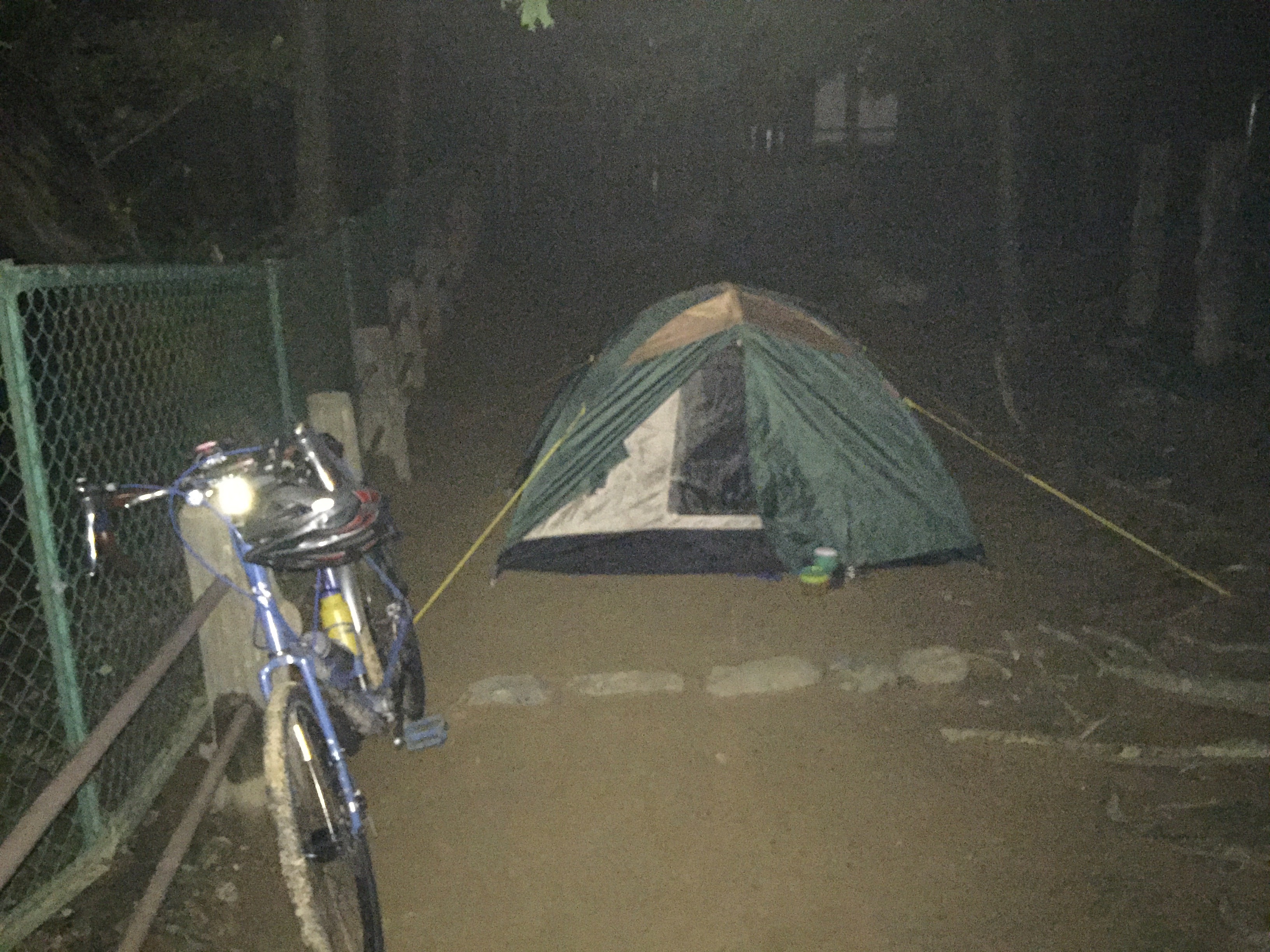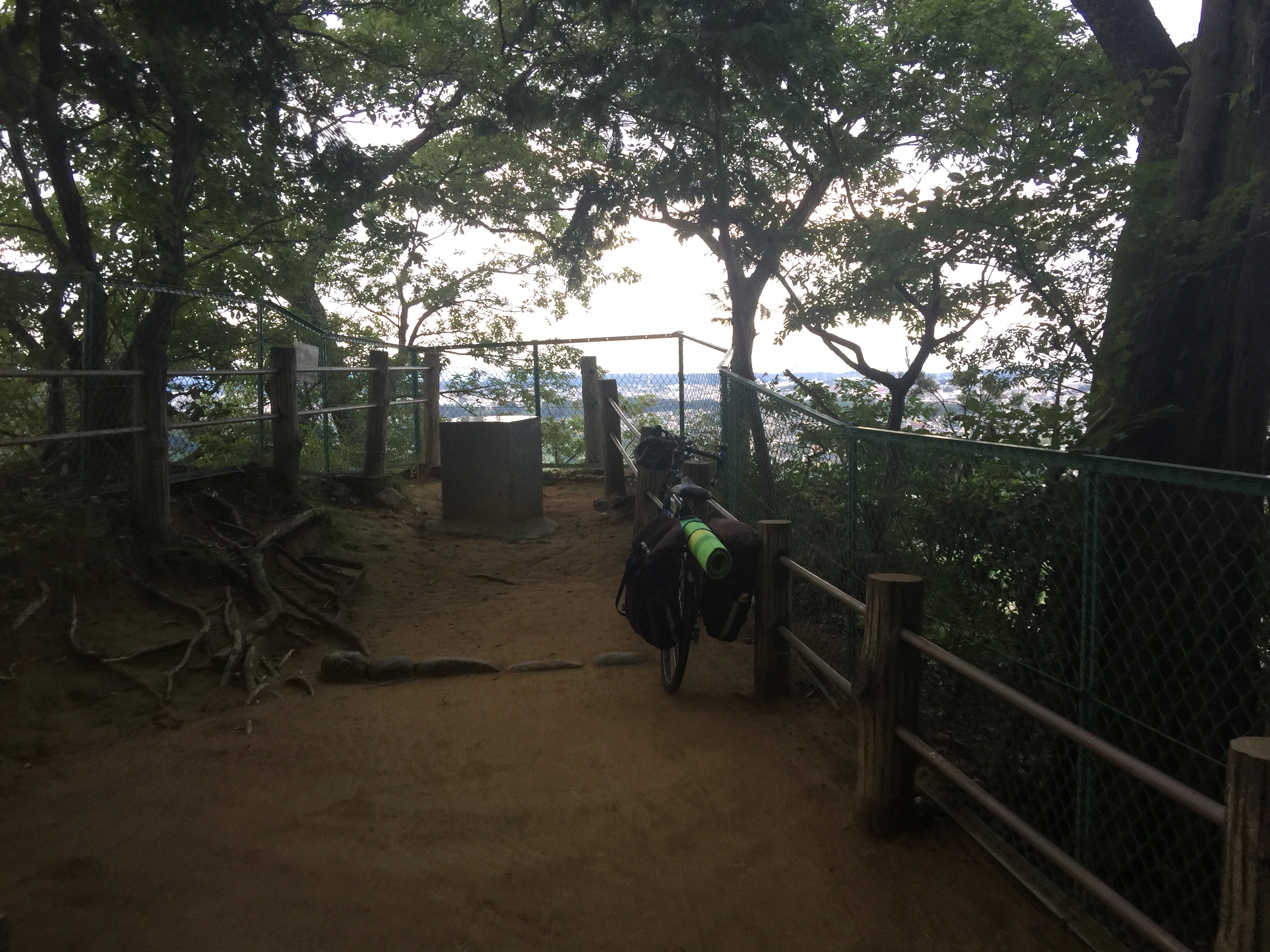 I spent the night on the temple grounds atop Sengendake. The summit of Sengendake is 235 meters above sea level. I had to push the Surly Blue Beast up the dirt trail to the top. I’m not sure why I thought it was a good idea to make camp at the top. Near the top it was so steep and the trail so slick with mud I nearly didn’t make it to the top. I finished setting up after dark and made my dinner. I thought this location was so out of the way that no one would bother me. No one did bother me but I didn’t go unnoticed. Elderly Japanese folks get up surprisingly early in the morning to take walks. I think I heard someone ringing the shrine bell at around 5:30 or 6:00. To get to the top of Sengendake they have to wake up VERY early in the morning.