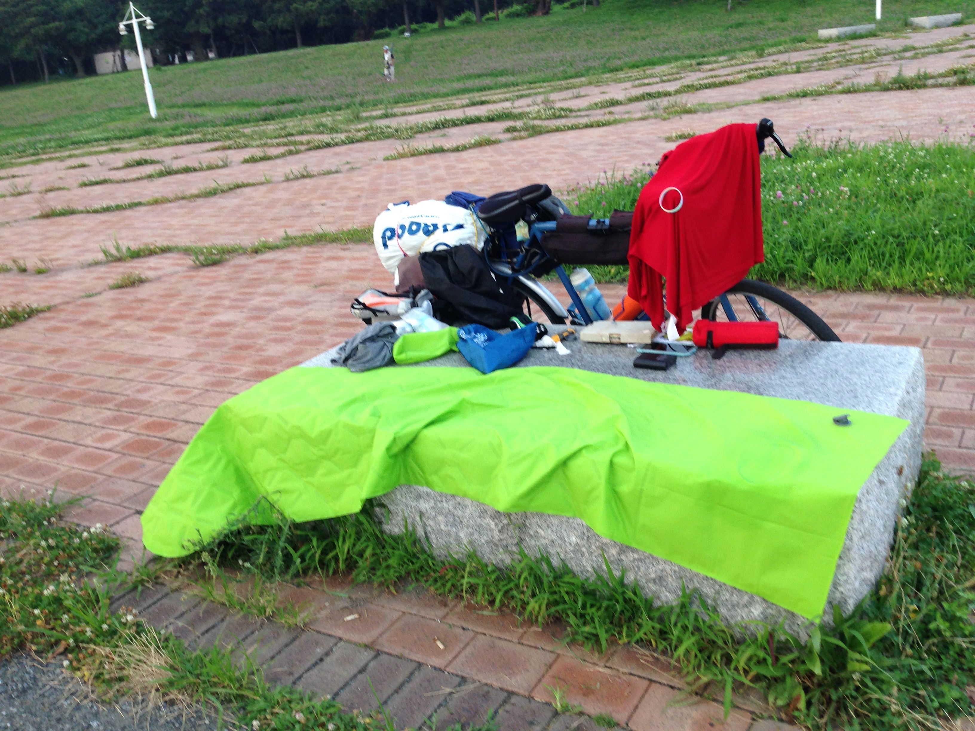 Because I was unable to reserve spot in the official camping area at the Jonanjima Seaside Park I was essentially stealth camping at the opposite end of the park from the campground. I don’t think there would have been any significant difference in the quality of the facilities. As there were people night fishing it doesn’t seem to make any difference to the management if people are hanging around all night. The airplanes flying low overhead did not bother me as much as I feared they might. The fact that I slept out under the stars didn’t really impact my inability to sleep either. I didn’t think there would be any mosquitoes on the seashore and I was mostly correct. I was only ‘bugged’ a little by one persistent mosquito that I think I wouldn’t have even noticed if I had been able to get to sleep. I didn’t sleep all that well because of the chatty fishermen that were nearby.