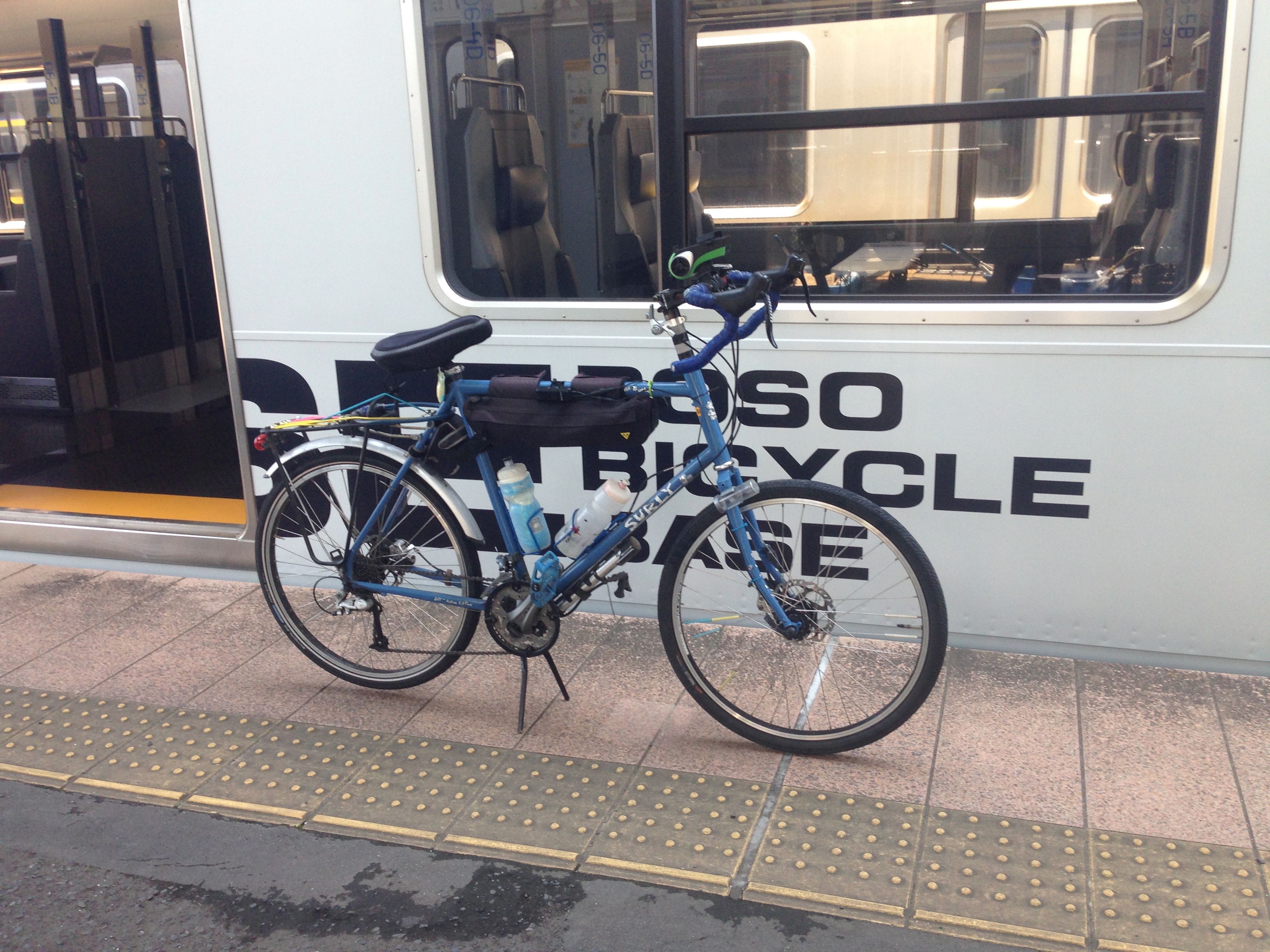 There were so many highlights the second day that talking about them all would make for a very long post. The ride from Jonanjima to Ryokoku in the early morning was very pleasant. Normally, riding in the heavy traffic in Ginza and other city areas of Tokyo would be a drag but early in the morning it was hassle free. By far, the most interesting part of the day was the train ride on the B.B. Base train. It probably seems odd to say the best part of a bike ride was riding the train but it was so easy and effortless that I am considering doing again to go to some other part of Boso Hanto. There is no shame in using public transit to get a fast forward to your destination. It isn’t cheating. The ride through the resort and fishing village of Kamogawa was great. The views were great but the memory of buying a bag of green beans and some bananas from an old man selling produce out the back of his truck will stick with me for a long time I think. It isn’t really that rare. But it was such a please surprise it made taking the wrong turn that brought me there worthwhile.