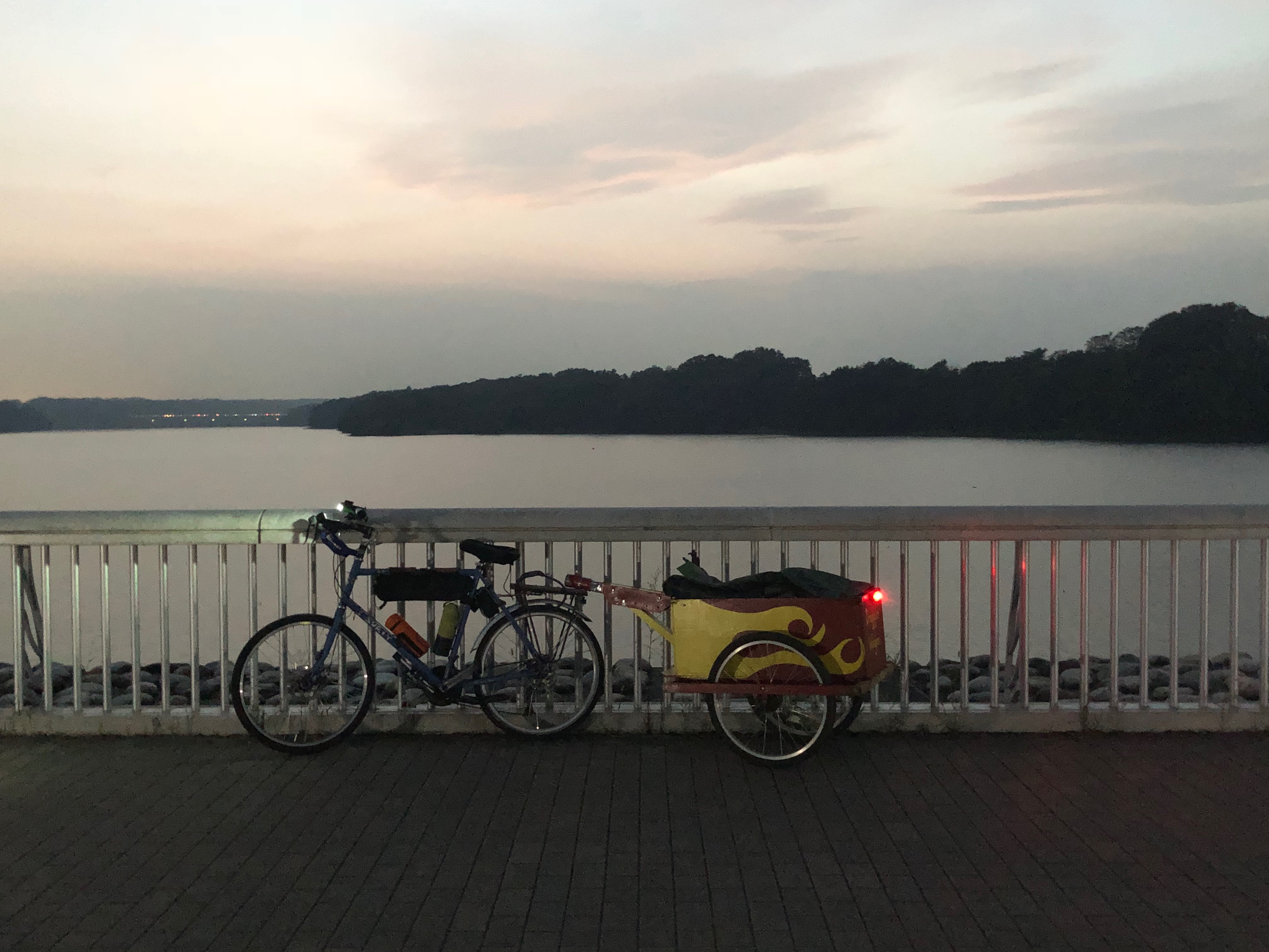 I got a late start on the first day but it didn’t really matter so much as I wasn’t really going very far the first day and I knew where I was going. It is only about a 10 kilometer ride from my house to Sayama Park where I intended to camp. I took my time getting there because I was pulling my homemade trailer which I have named the Dragon’ Wagon, and because I made a brief stop to find a geocache. It is the first time I have been on the dam after dark. It was very pleasant and, dare I say, romantic? Being alone, the romance of the location was completely wasted on me. Oh, well. There were more people about than I expected. I shouldn’t have been surprised though. Being fall, the sun sets early and the weather was really nice. I sat at a picnic table in the park below the dam to make my dinner. After eating and cleaning up I went in search of a campsite. Officially, camping is not allowed in the park but no-one in charge was around after dark to chase me away. I camped near the edge of the woods near the train tracks. Even though the trains were still running until about midnight the noise didn’t bother me at all. The 2 or 3 idiots yelling in the wood were annoying though. I have found stealth camping or squatting is not a problem in Japan, especially if you arrive late and leave early. One thing to note is that Japanese senior citizens get up early in the morning to go walking and hiking. They say that people need less sleep when they get older. Since Japan is an aging society there are a lot of senior citizens traipsing through the woods and early hours of the morning. I noticed many years ago, that when I go hiking in the mountains, no matter the time of the day, I always see more elderly people hiking in the woods than young people. The only downside of the day, and in fact, the whole trip was that my bike fell over at the campsite breaking my smartphone holder.