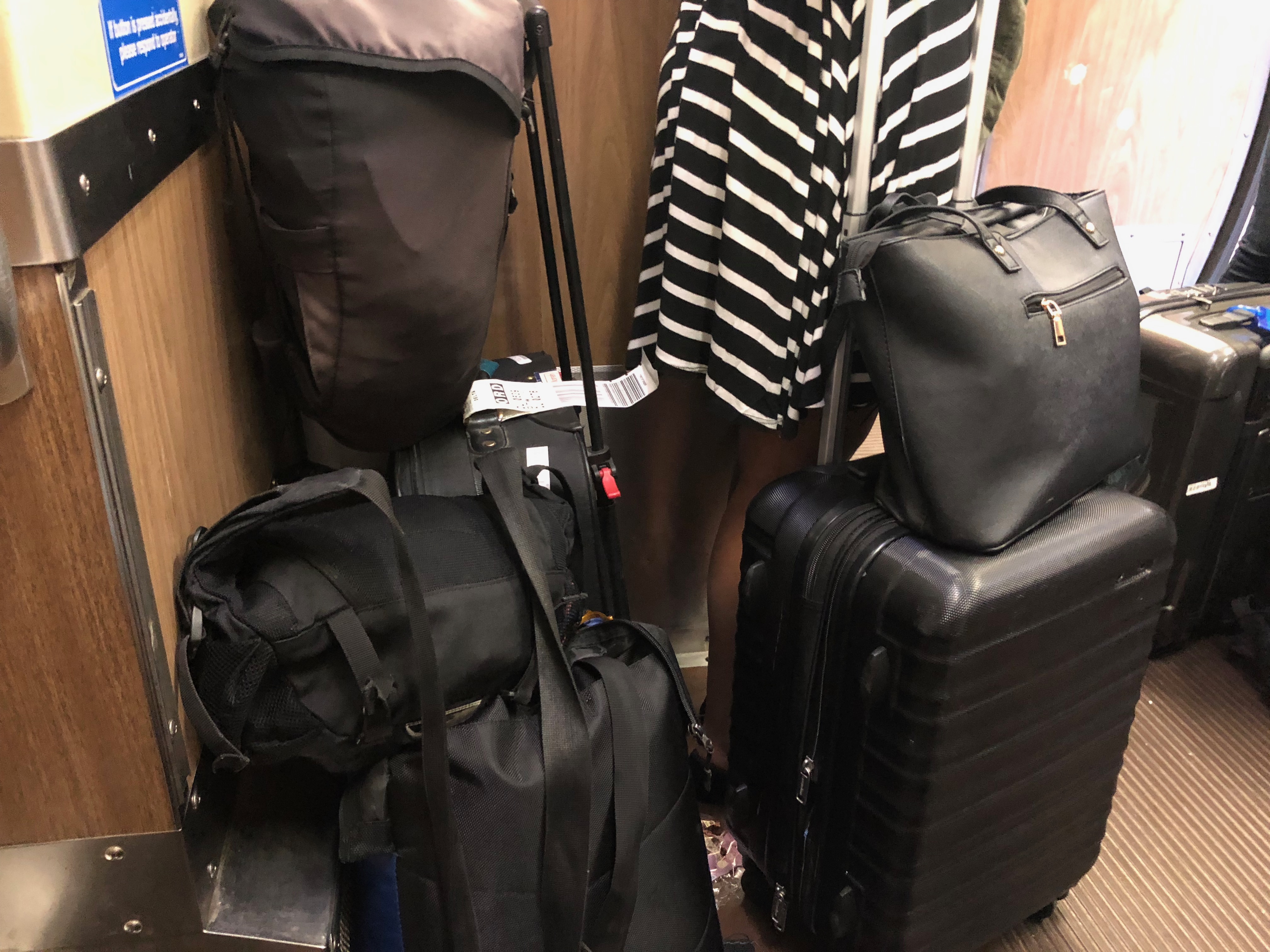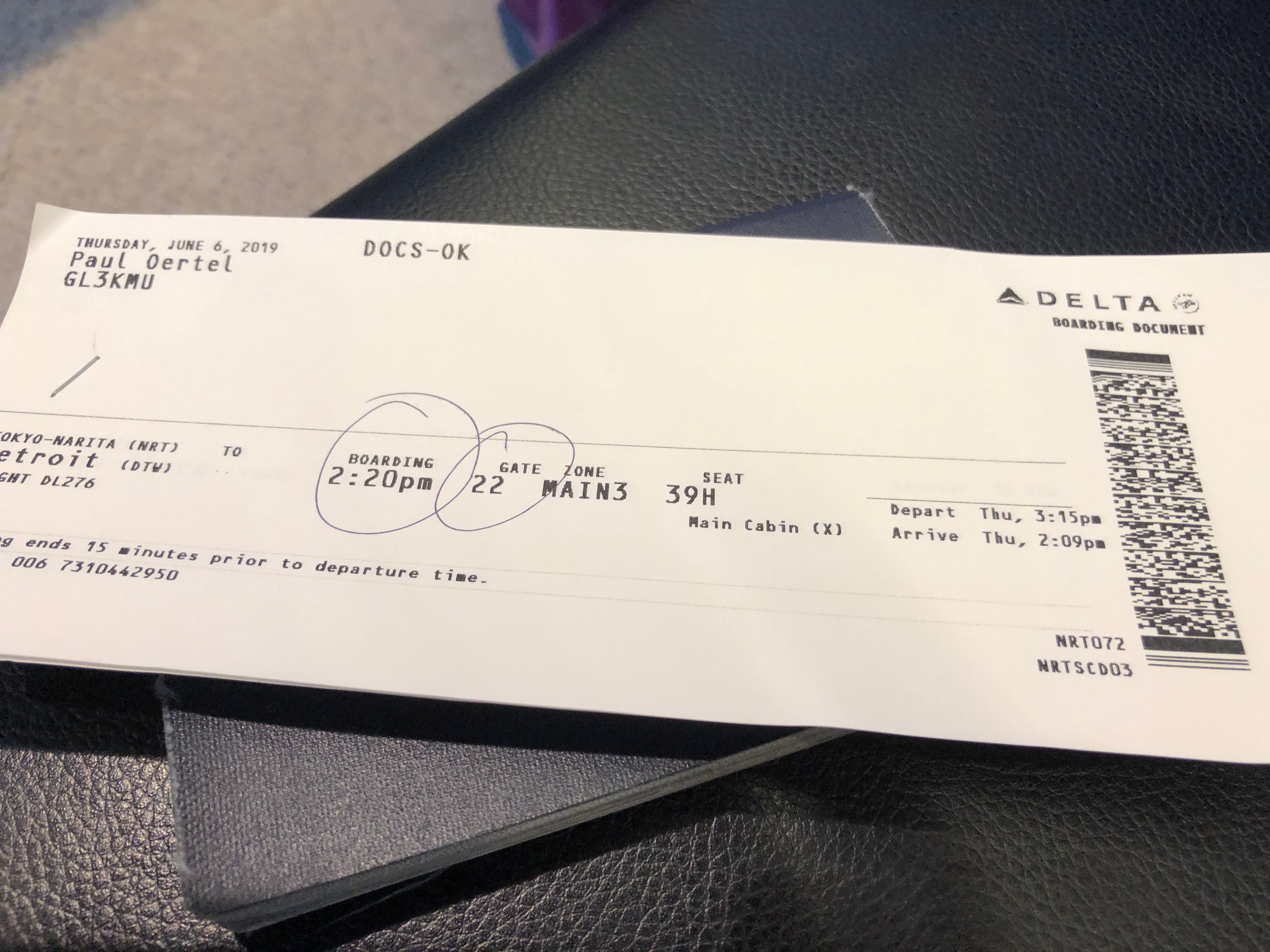 My experiences going through customs, security and immigration at various airports was mostly uneventful. At Narita, the security staff took a particular interest in my backpack. I think the shape of the tent and my multipurpose-function bike light/speaker and phone mount made them nervous. They opened up the pack and examined everything I had in there then returned it to me with a thanks and I continued on my way. In Detroit, where I had to change planes, I went through security and customs again. This time the security people weren’t interested in my backpack but my waist pouch containing all of my camera equipment was deeply interesting to them. It was jammed packed with spare batteries, old iPhone-cum-cameras and other assorted cables and peripherals. Really too much stuff. The TSA agent took out each item in the bag and wiped each one down with a tiny cloth. I assume he was looking for explosives residue. When he was satisfied he did his best to put everything back in. I remarked that it was easier to take it out than to put it in. My transfer in Detroit went smoothly and I made it to my gate with time to spare.