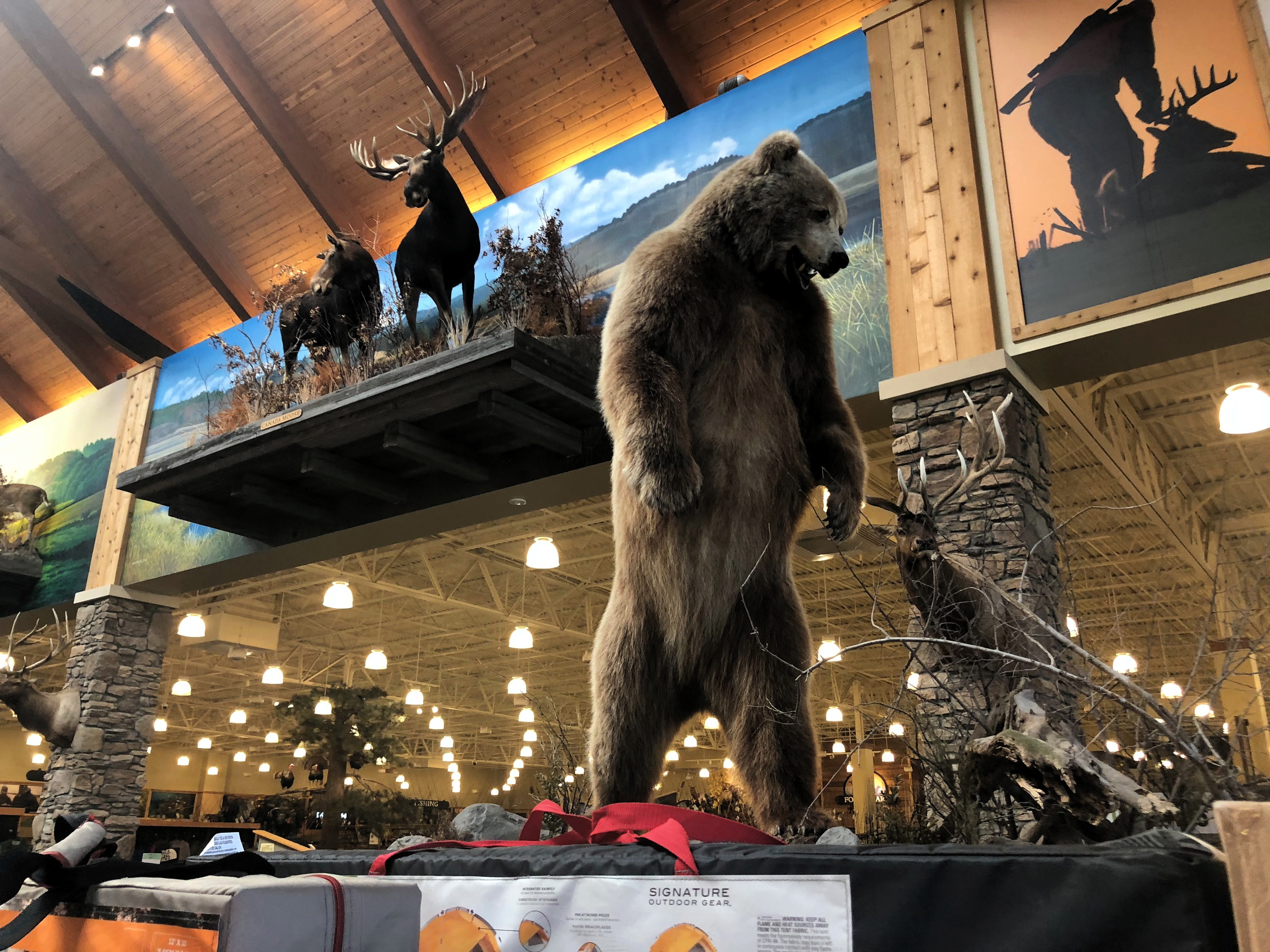 My folks brought me up to Sturgeon Bay after having a fun breakfast with my two aunts down in Sturtevant. On the way, we stopped at a outdoor and sporting goods store called Cabela’s in Green Bay. I only wanted to get some decent rain gear because, based on the weather forecast, it looks very much like I will be riding in rain during at least part of the tour. The store was fantastic. It was like stepping into a museum of natural history. There were taxidermy animals in dramatic tableaus all around the store. And the store was ginormous. I could have spent hours there looking at all the great camping gear. It is a good thing that I kept myself focused on my mission to get decent rain gear, otherwise, it would have been financially devastating.