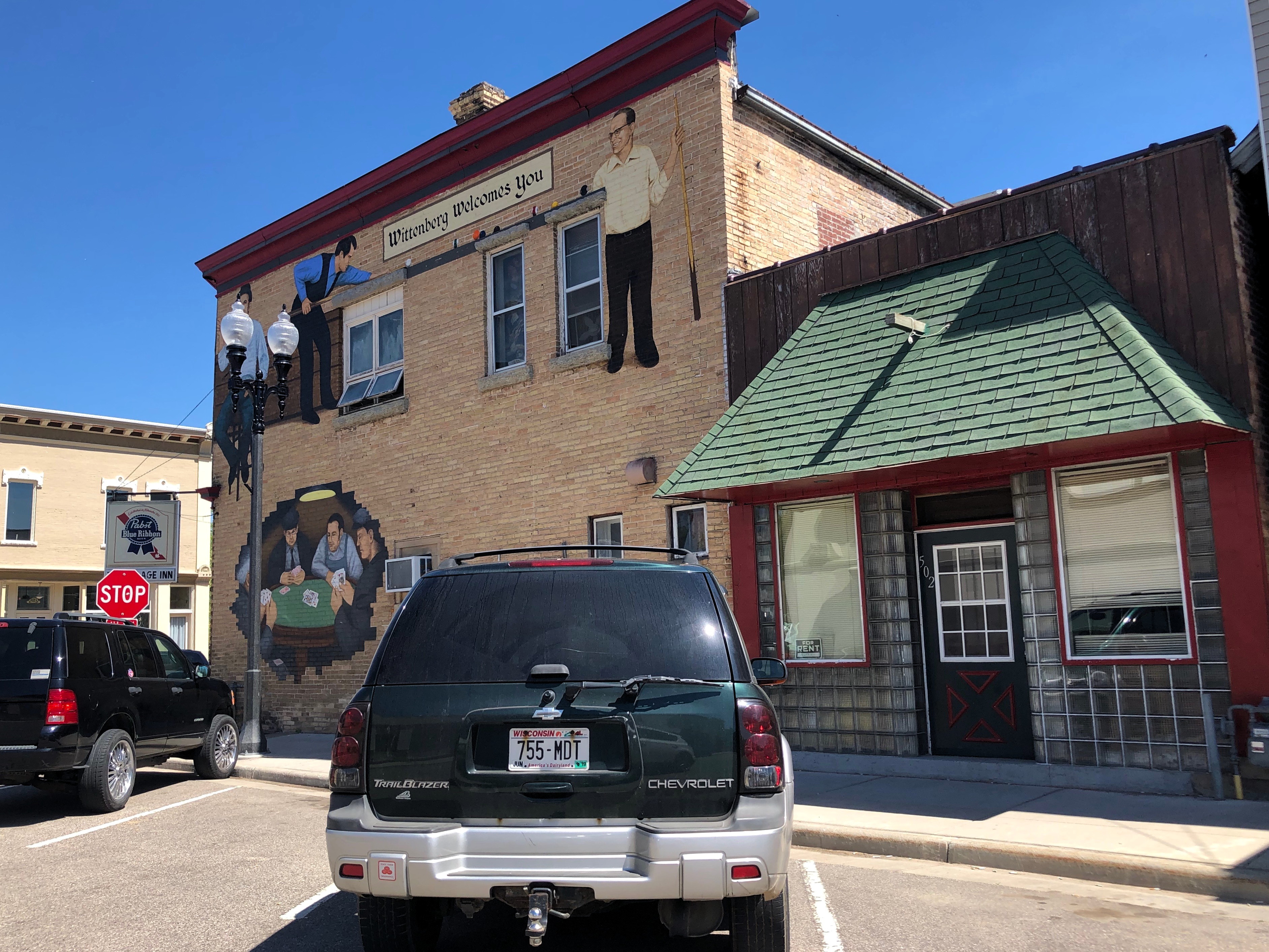 In Sturgeon Bay I was hooked up with my ride for the week. A Maxim full suspension mountain bike. It has a rack on it and one water bottle cage. No water bottle. I didn’t bring one will me either for the reason I mentioned before. I couldn’t fit a bottle full of air in my overstuffed bags. I installed my multi-purpose iPhone holder/speaker/light onto the handlebars and lowered the seat. I added a motorcycle license plate that I found in Japan while geocaching just for fun. I took the bike for a short test ride down to the end of the block. It will probably take me a few kilometers to get used to the shorter wheelbase and sponginess caused by the suspension. I think I will be okay with it. If not, it is going to be a very loooong week.