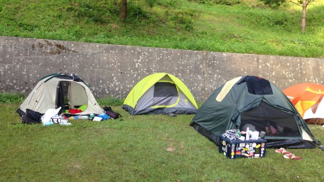 Yasuragi no Mori Campground where I stay the second night was a typical Japanese auto camping site. Meant for picnickers and people rode in a car for just a couple hours to get there. No showers. But plenty of water for cooking and washing gear at the outdoor concrete water trough. I didn’t have a reservation for this campground either. I knew in advance that a large group had reserved it in advance but I went anyway. I reasoned that even if I couldn’t stay in the campground proper I would be able to stealth camp nearby. After seeing the area I think I could have found a place but as luck would have it the kanrinin was not at all concerned about the group that had reserved the whole campground and neither were the people that reserved it. They didn’t mind if I squeezed my little tent in. For most of the campers, the foreigner on the bicycle was just a curiosity blip on an already fun weekend with friends. As usual there is always someone who tries real hard to speak English with me but is always relieved when they discover I speak Japanese. I had a nice conversation with a youngish fellow named Yoshi. He gave me 2 cans of beer which I drank in addition to the one I had bought at a nearby convenience store. I like meeting him though at times the conversation was a bit awkward. Meeting people along the way is part of journey.
